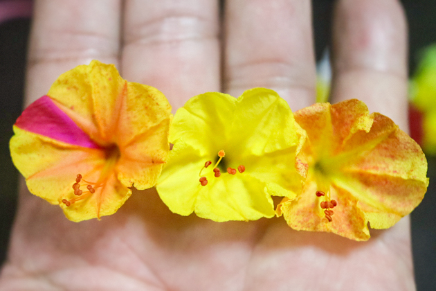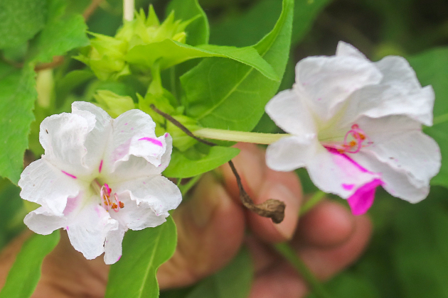 オシロイバナは、英語で「Four o‘clock flower(午後4時の花)」の別名もあります。その名の通り、夕方の4時くらいに花が咲き、翌朝8時ごろにしぼむ夜咲きの植物です。個体によってある程度の時差があり、その辺りはアバウトなのです。このオシロイバナが夜に咲く性質には、少し気になることがあります。