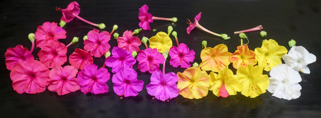 もともとオシロイバナは南米の植物ですが、こうした突然変異は原生地や諸外国からも報告がなく、日本において生じたものと考えられています。