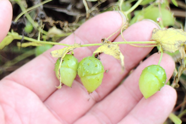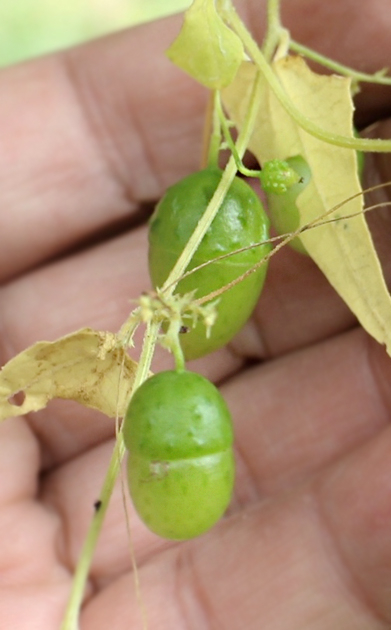 ゴキヅルの茎葉や花は、私の興味を特に引くものではないのですが、この果実はとてもユニークで。、まるで緑のどんぐりのようです。私のような好事家たちは、大好きな果実の一つだと思います。