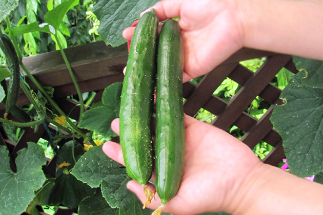 キュウリは、ケイ酸をよく吸収する野菜です。十分な水分を与え、「ネイチャーエイド」を適宜施したり、土にケイ酸塩白土を混ぜたり、葉に水溶性ケイ酸剤が含まれる液肥「バリカタ」の1000倍希釈液を散布すると組織が強化され、病害抵抗性や環境耐性が高まり、驚くほどたくさん収穫できるキュウリ栽培が楽しめます。