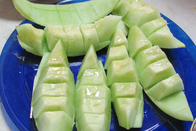 授粉後50日で収穫した「ころたん」。鮮やかな緑の果肉。くどい甘さが苦手な私ですが 「ころたん」のさわやかな甘さは格別に好きです。