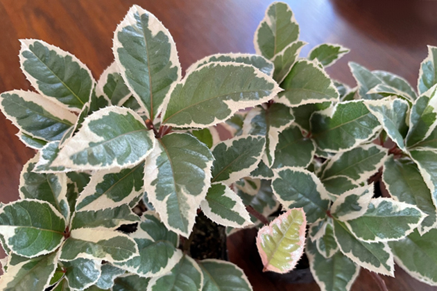 私も白斑入りヤブコウジを育てています。葉緑素が足りない分だけ果実に栄養を回せないので、実が付きにくいですが、日陰の庭を彩るカラーリーフとして重宝しています。