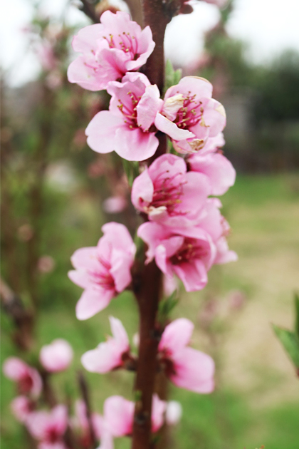 上の写真は、モモPrunus persica(プルヌス ペルシカ)バラ科サクラ属モモ節です。かつてバラ科サクラ類は、サクラ属(Cerasus)、スモモ属(Prunus)、モモ属(Amygdalus)など複数の属に分けられていました。しかし近年、DNAを用いた分子系統学の研究が進むと、従来の属の分け方では、本来一つの祖先から枝分かれした“自然なグループ”にならないことが分かってきました。