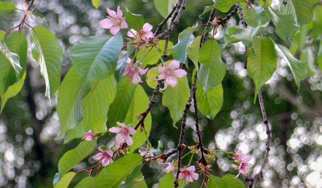 ヒマラヤザクラは、ネパールやブータンなどヒマラヤ中部から東部の亜熱帯域に自生し、休眠が極めて短く、10〜12月に開花する個体群として知られています。