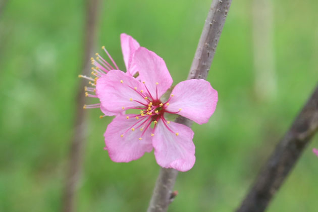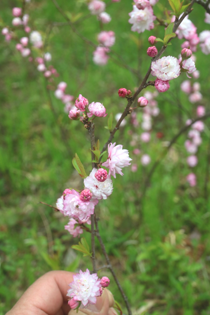 ニワザクラPrunus glandulosa(プルヌス グランデュローサ)バラ科サクラ属。種形容語のglandulosaは、ラテン語で「腺のある」という意味です。このニワザクラは、秦嶺山脈以北の陝西(せんせい)省、河南(かなん)省、河北(かほく)省に生息しています。