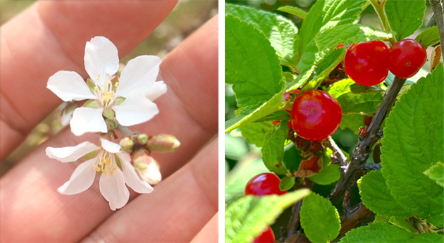 ユスラウメは1.5~2mほどの低木で、日本への来歴は古く、平安時代に遣唐使が中国から持ち帰ったものと想定されています。甘酸っぱい実が人気の低木果樹で、ご存じの方も多いと思います。