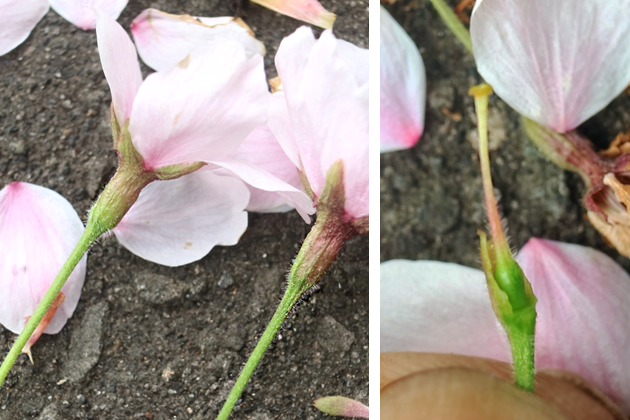もう一度、一つ前のオオシマザクラの写真に戻って観察してみると、オオシマザクラにもそのような形質が見られることが分かります。