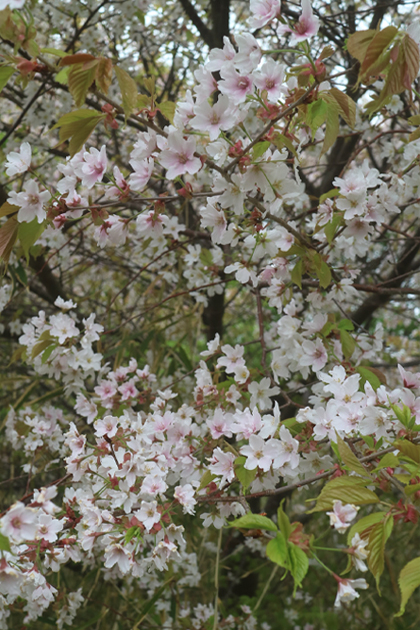 オオヤマザクラPrunus sargentii(プルヌス サージェンティー)バラ科サクラ属。種形容語のsargentiiとは、アメリカの植物学者チャールズ・スプレイグ・サージェント(Charles Sprague Sargent、1841~1927)にちなみます。