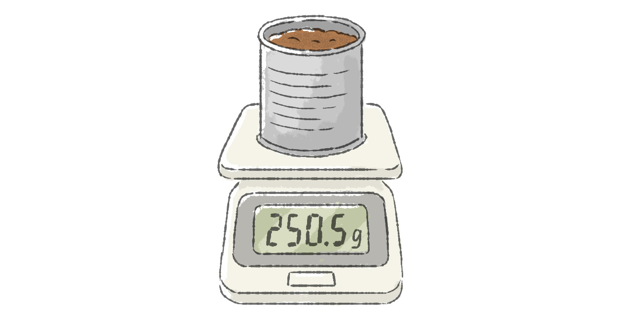 2. 1.の土の重さ(生土の重量)をデジタル計で量る。