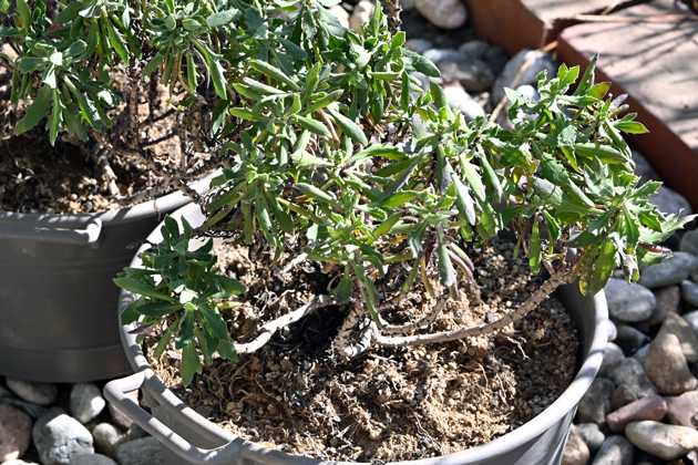 とはいえ、乾かしすぎも注意が必要です。極端な乾燥状態のまま強い寒さに当たると、株が傷みやすくなるのです。