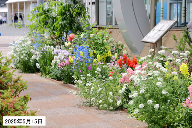 東京都江東区「東京テレポート」駅前の花壇。2025年5月15日の様子