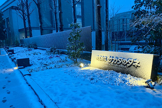 本社花壇にも雪が降り積もっていきました。