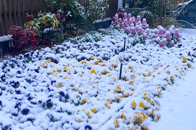 翌朝出社してみると、花壇は一面真っ白でした。