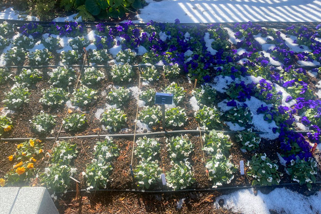 品種名のピックが目印となり見つけられました。パンジー・ビオラは雪に覆われると、どうしても心配になります。