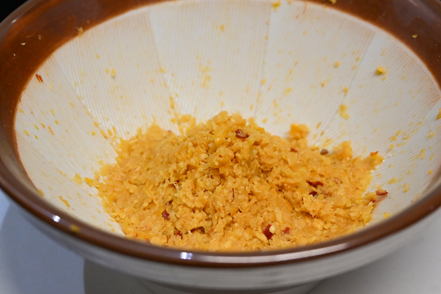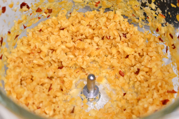 全ての材料をフードプロセッサーに入れ、程よく細かくします。