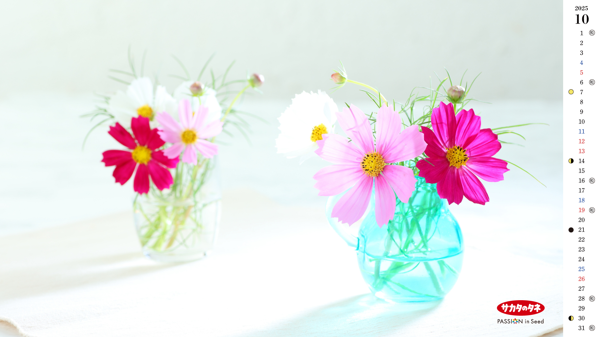 一粒万倍日や月のリズムをガーデニングに取り入れている方にも活用していただきやすい壁紙カレンダーです。