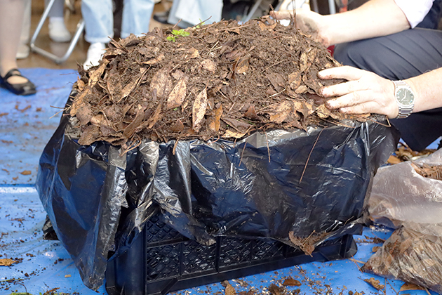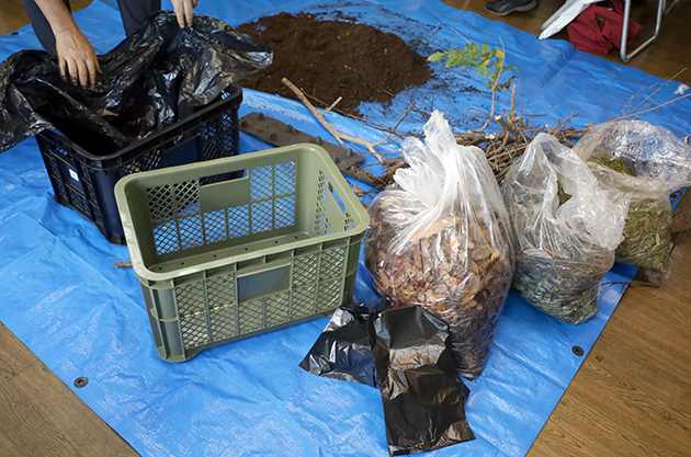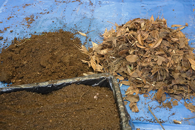 落ち葉と同量の土を用意する。草が混ざっていたら取り除いておく。
