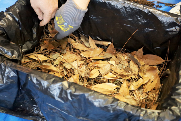 古い落ち葉だと、すでに菌ちゃんがしっかり付着していることがあるから、古い落ち葉を使ったほうがいい。